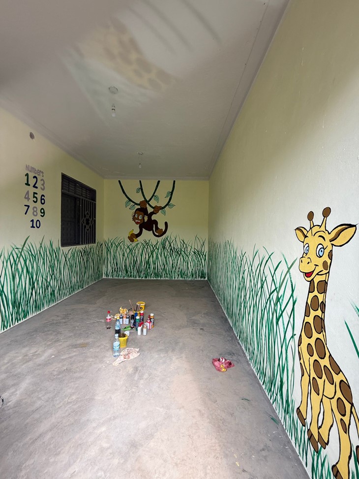 Im Mittelpunkt der Reise stand die Gestaltung des neuen Security-Hauses auf dem Gelände, das künftig auch einen Spiel- und einen Nähraum beherbergt. Schon am nächsten Tag begannen die Arbeiten. In nur sechs Tagen wurden die 4 neuen Räume im Security-Haus und 6 Räume, Flure und der Essbereich im Waisenhaus selber grundiert, gestrichen und mit farbenfrohen Motiven verziert. Außerdem wurden 16 Fenster und fünf Türen entrostet und mit Rostschutz versehen.